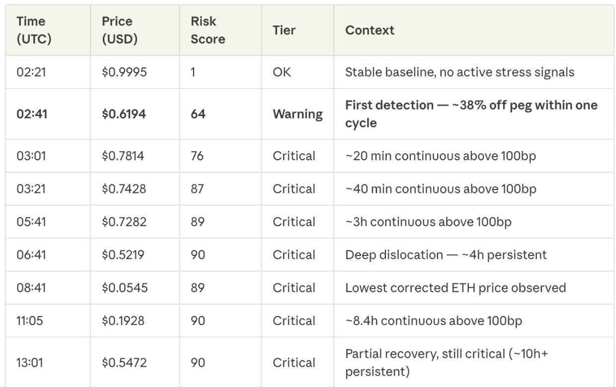 This created a narrow but actionable decision window. Participants with real-time visibility into the breakdown were able to act before liquidity fragmented. Once the exploit became public and uncertainty spread across markets, exit conditions deteriorated rapidly and that window closed.