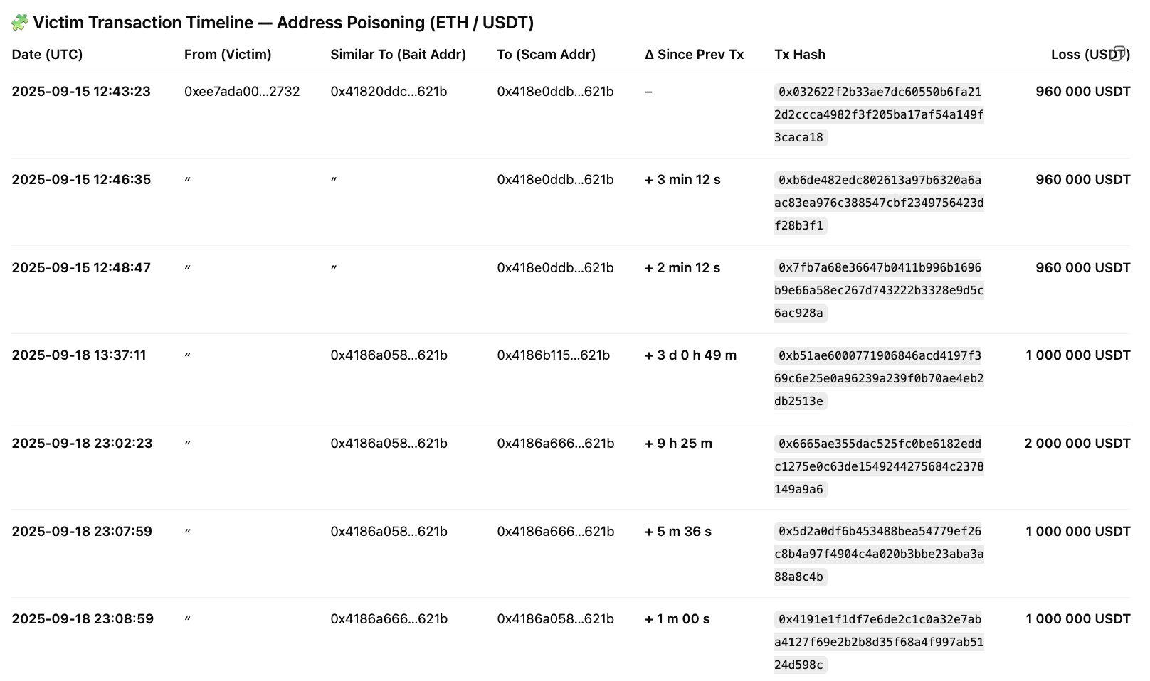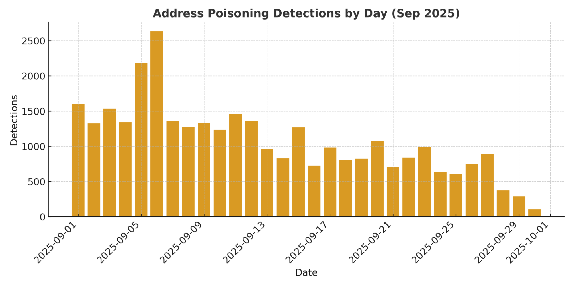 We detected 32,290 suspicious address-poisoning events affecting 6,516 unique victims during September 2025 (multi-chain).